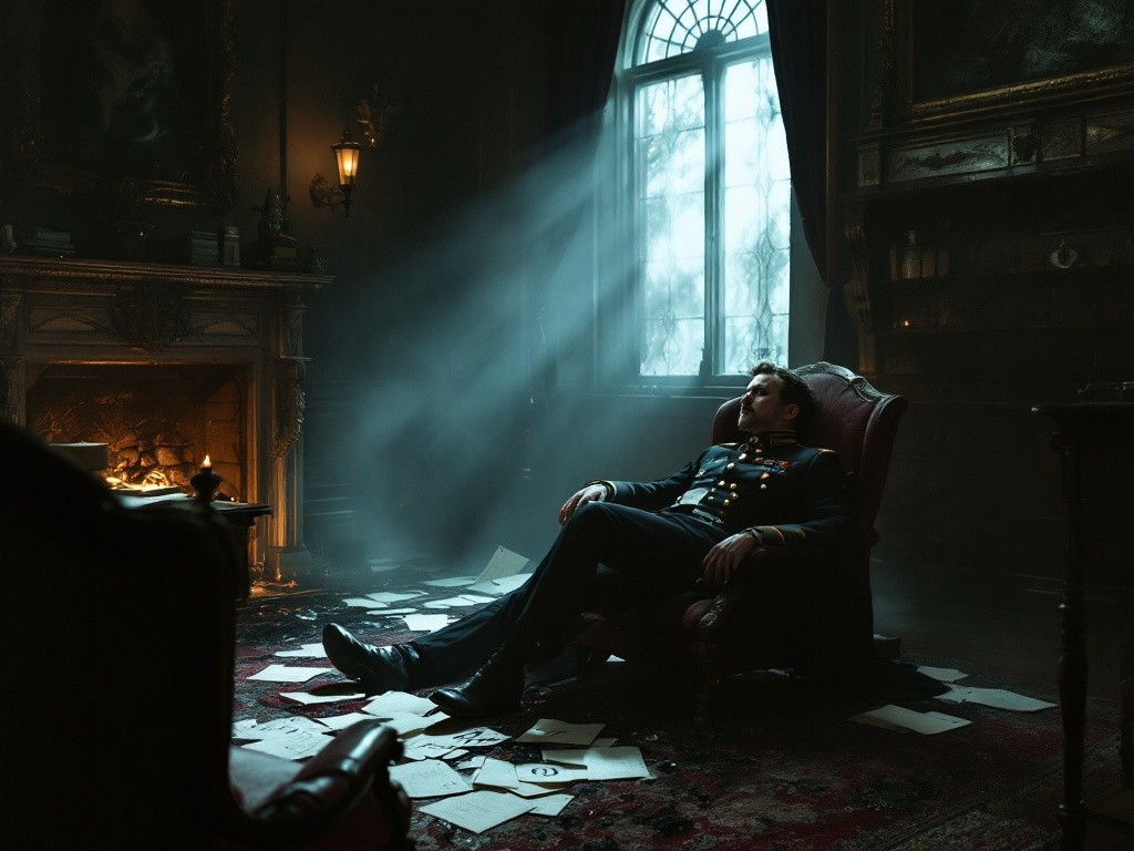 General Darius Vale, key advocate for democratic reforms and strategic genius behind Aldemar’s defensive success, is found dead in his study. The official story claims heart failure, but subtle clues suggest a more sinister truth.